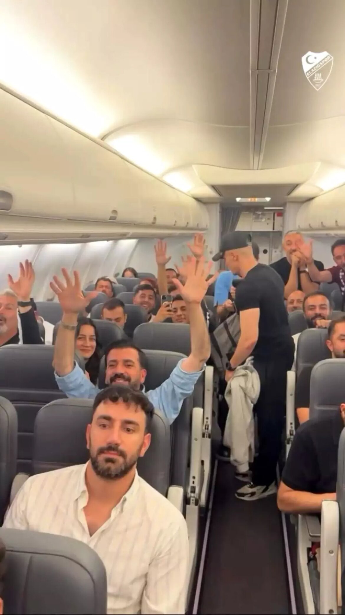 Futbolcular ve taraftarlar Ankara Esenboğa havaalanından kalkan uçakla Elazığ’a kadar marşlar okuyup sevindiler. – ELAZIĞ
