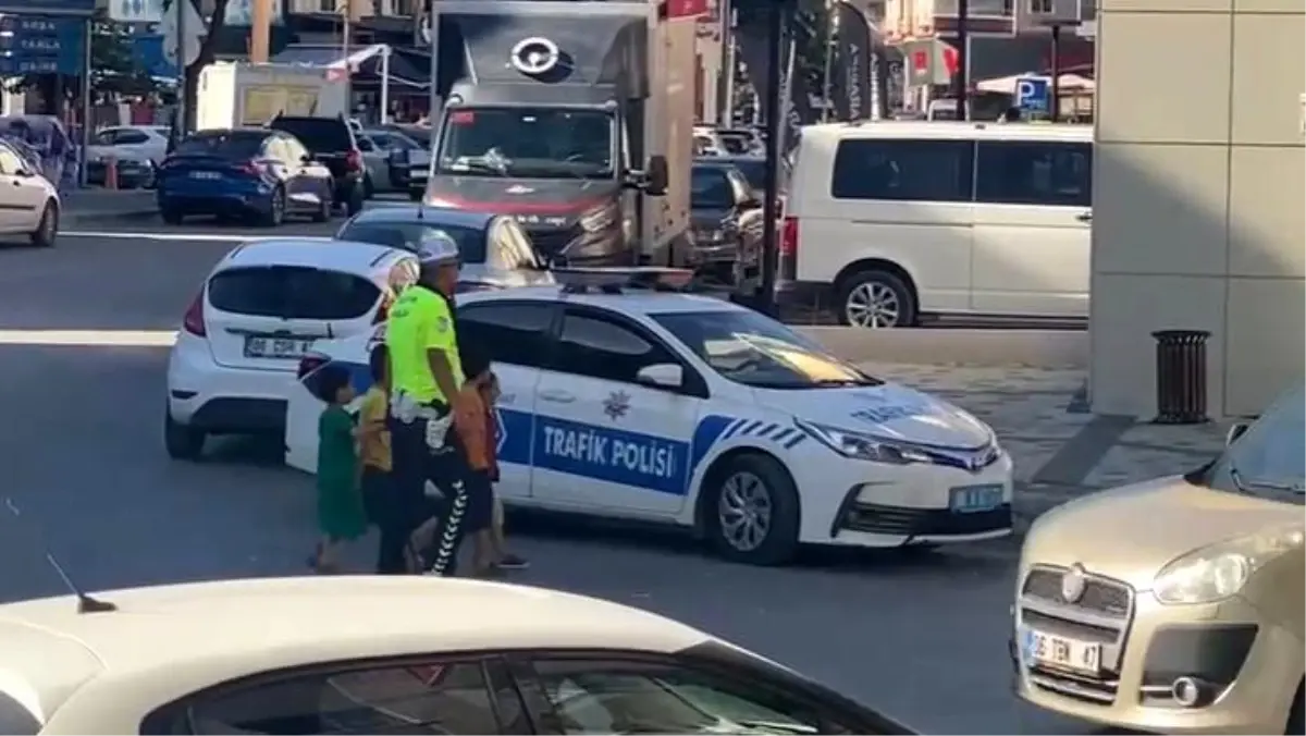 Ankara’da bir trafik polisi, 4 çocuğu ellerinden tutarak yolun karşısına geçirdi. Yürek ısıtan anlar ise cep telefonu kamerasına yansıdı.
